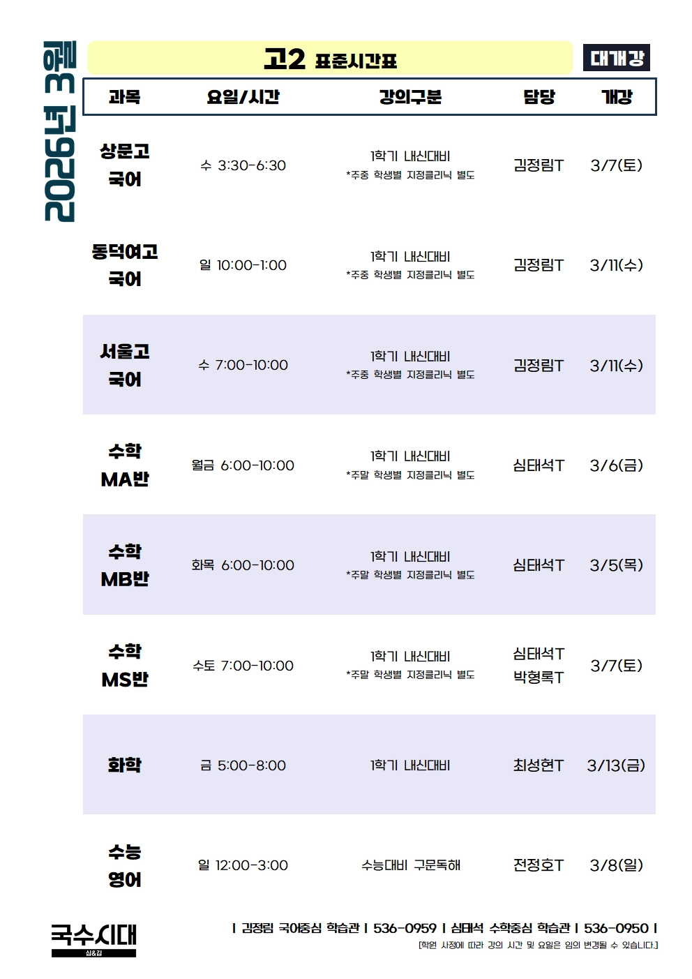 고등 시간표